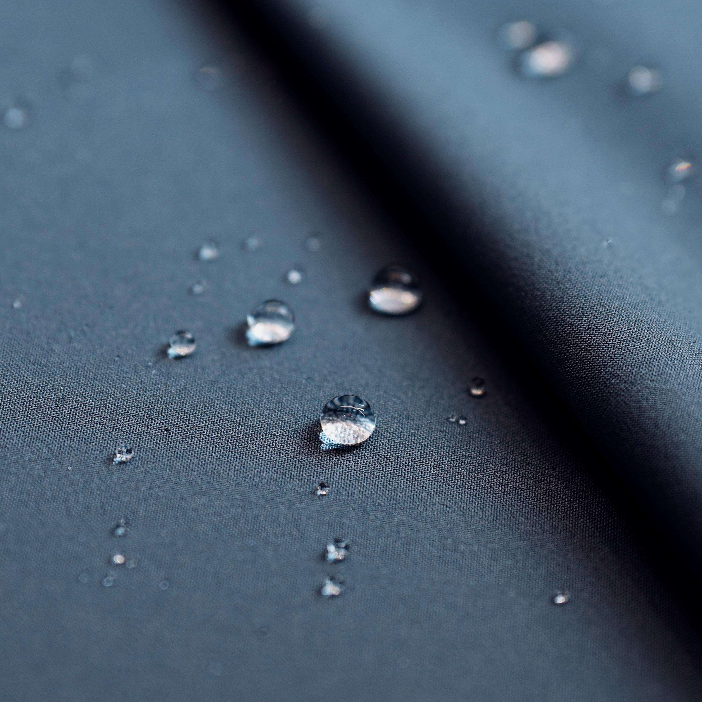 Dette stof anvender fint Flexi-elastisk garn til vedvarende komfort og strækbarhed, mens dets højtdensitets mikrofilamentstruktur sikrer holdbarhed og skrumpebestandighed. Behandlet med en superhydrofob finish, der effektivt afviser vand for at holde dig tør i våde forhold.
